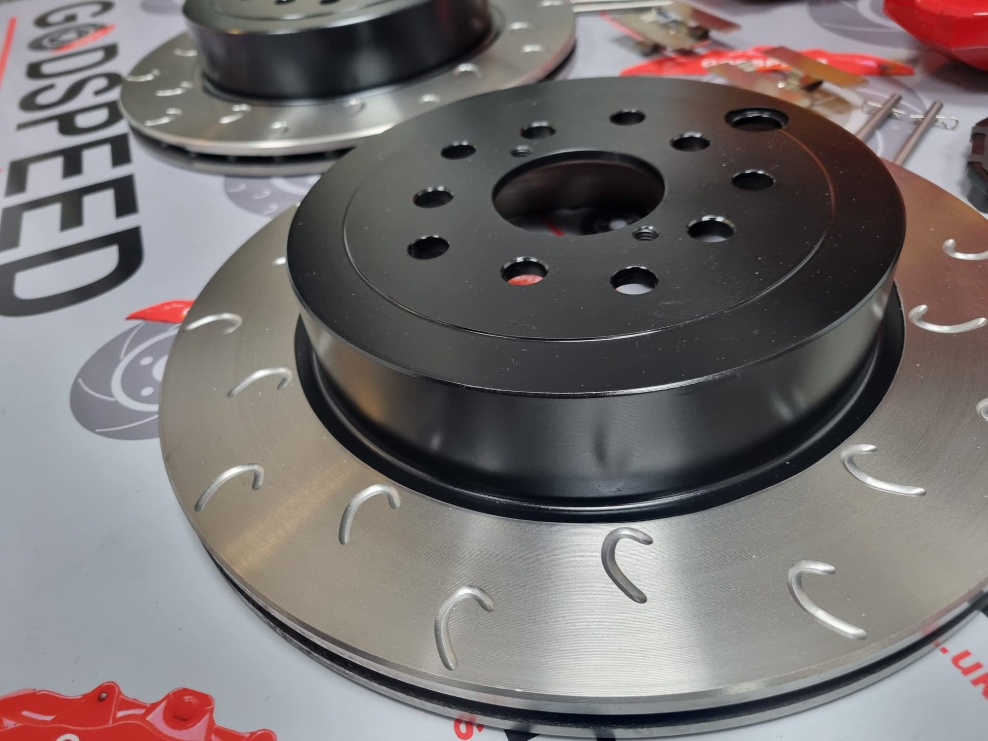 Upgrade your GT86's braking power with our Rear 2 Pot Brake Kit! Ready to bolt on and complete with 316mm vented grooved discs for improved performance. Choose from 6 curved or G hook grooves. Featuring brand new Impreza STi Brembo style calipers in your choice of colour (add colour choice in notes section at checkout) with Kevlar pads and pin kit included. Keep that perfect braking balance!